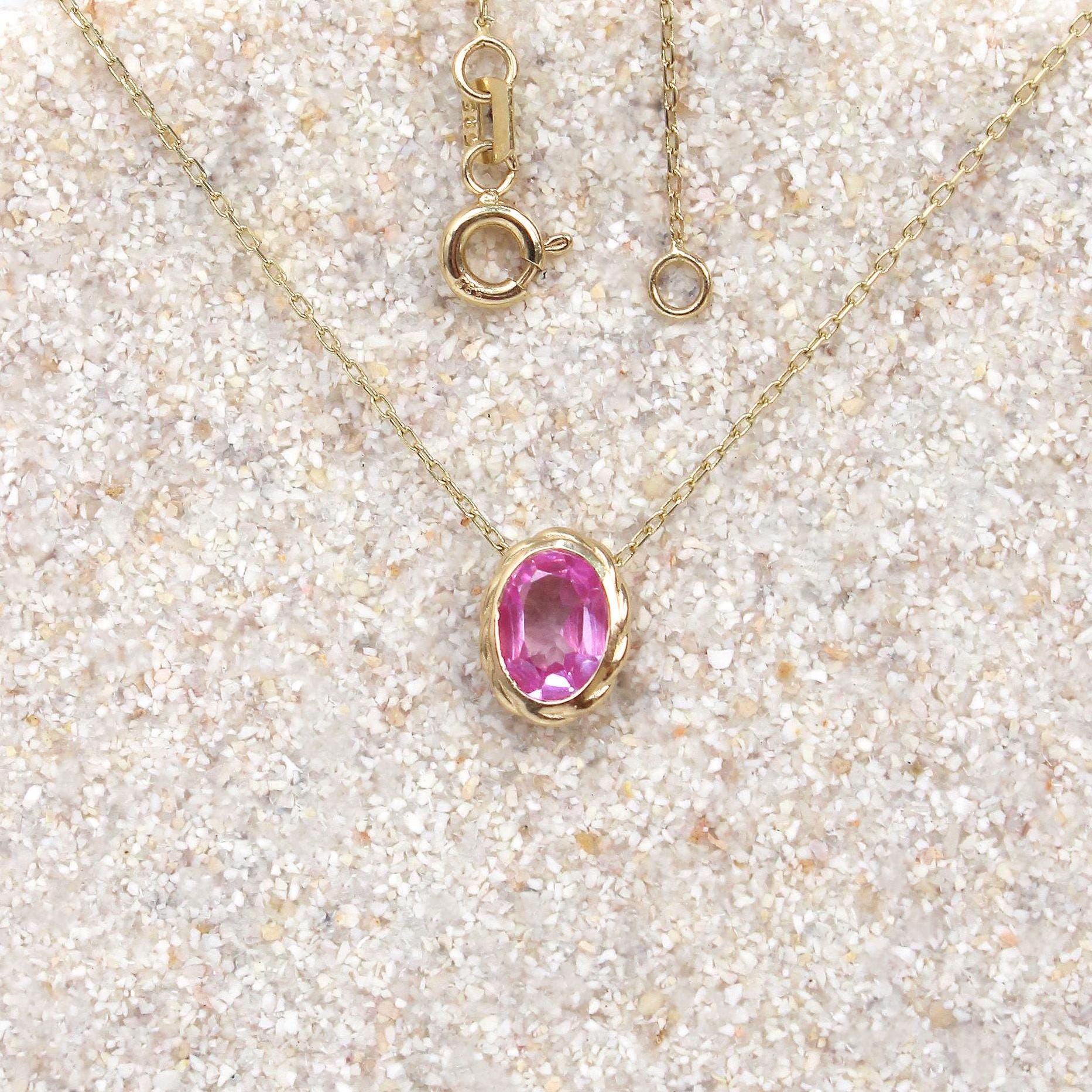 Pink Sapphire Pendant Necklace – 14K Solid Gold