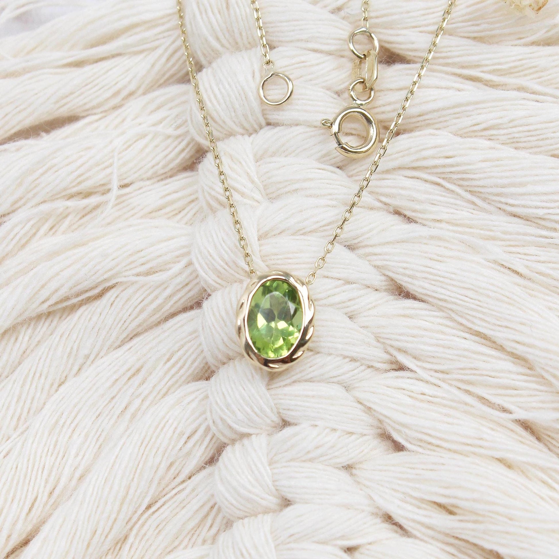Elegant Oval Peridot Pendant Necklace – 14K Solid Gold